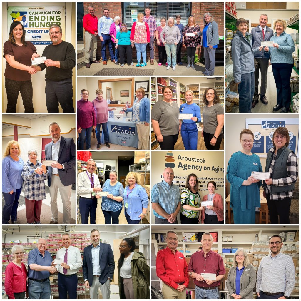 ST. JOHN VALLEY, ASHLAND, and BANGOR, Maine (May 14, 2024) โ Acadia Federal Credit Union, a member-owned financial institution with branches throughout northern Aroostook County and Bangor, proudly announces that the institution raised $52,038.73 in 2023 to support Maine hunger relief efforts in 2024.