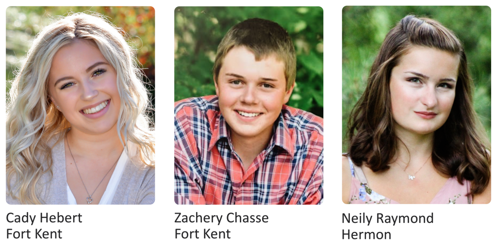 ST. JOHN VALLEY and BANGOR, Maine (July 8, 2020) โ Acadia Federal Credit Union is proud to announce their 2020 Acadia FCU scholarship recipients. Cady Hebert, Zachery Chasse, and Neily Raymond will each receive $2,000 to help fund their college educations.